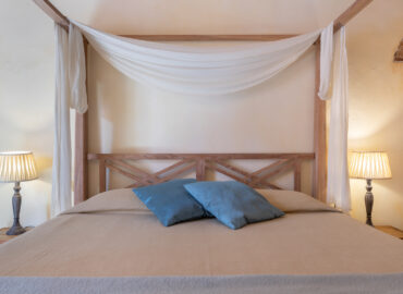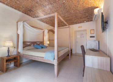 Il letto a baldacchino completo di teli rendono “unica ed intrigante” questa camera.
